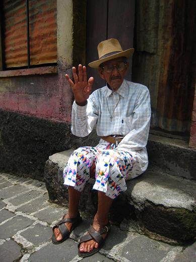 ありがたい長寿の神様にお供え物するように2ケツアール払った。