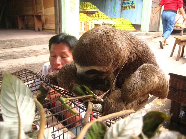 ナマケモノも売ってる。一匹/30ソル(1000円)。