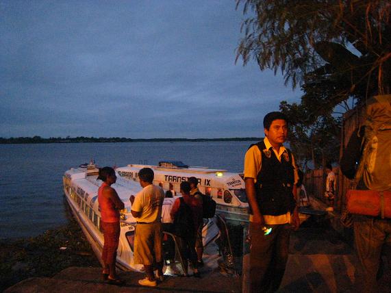そこから木製の小船に乗り換えて、コロンビアへ渡る。