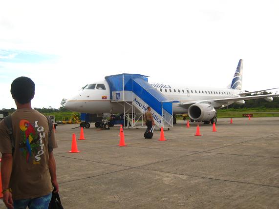カルタヘナ~パナマまで小型のプロペラ機で移動。(所要1時間強)