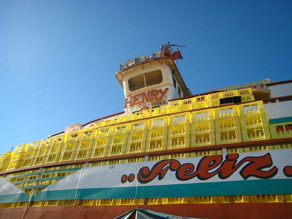 3階建ての大きな船は1階が貨物用で2階、3階が乗客用となっており