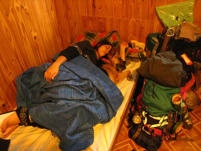 トゥルーチャ(宿の飼い犬)と添い寝したり
