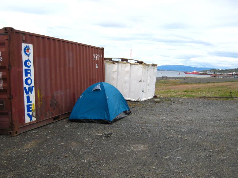 海辺に放置されてるコンテナの脇にテント張って、ラーメン作って食べた。