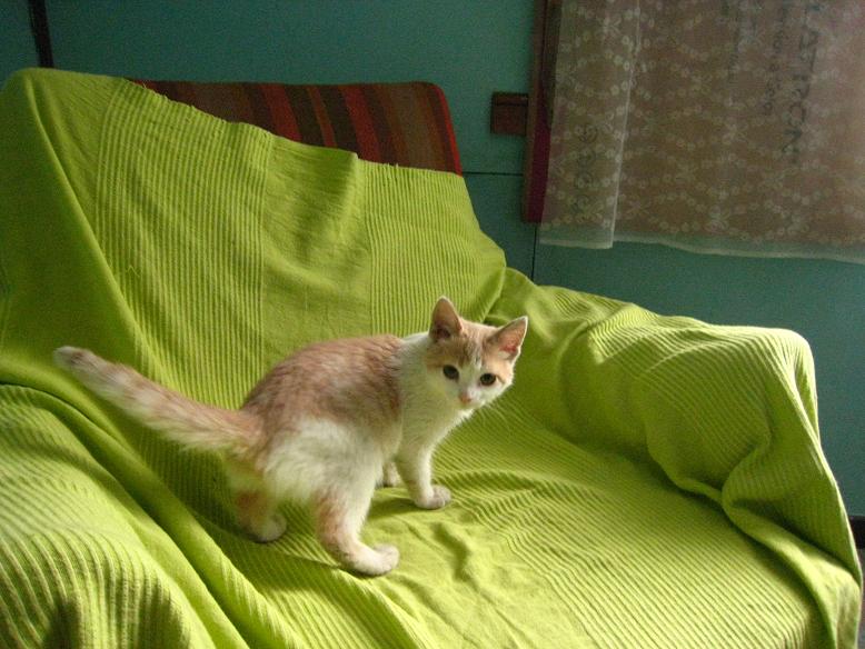 ソファーや壁の色がピーターパン色(緑&オレンジ)で統一されてて落ち着かん!