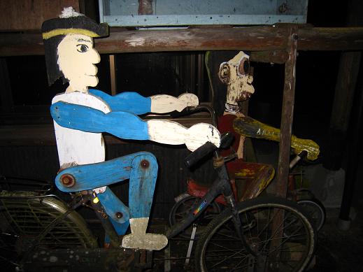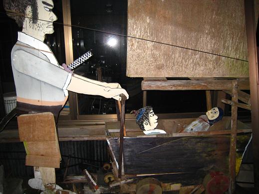 途中、岩国の錦帯橋やリサイクルショップに寄り道してたら一日では自宅に帰れそうになくなってきたので、再び、佐々木さん家にお邪魔させていただく。到着するや佐々木さんはホタルの穴場スポットまで車で連れて行ってくれた。おお!!!ホタル大量発生!!!こんな光景は初めて。そのまま、山奥でからくり人形作ってるおじいちゃんの家に行く。趣味で作っているらしいからくり人形に爆笑。そしてちょっと感動。自転車に乗ったアラレちゃんはまったく似てない。となりの男は誰だ?