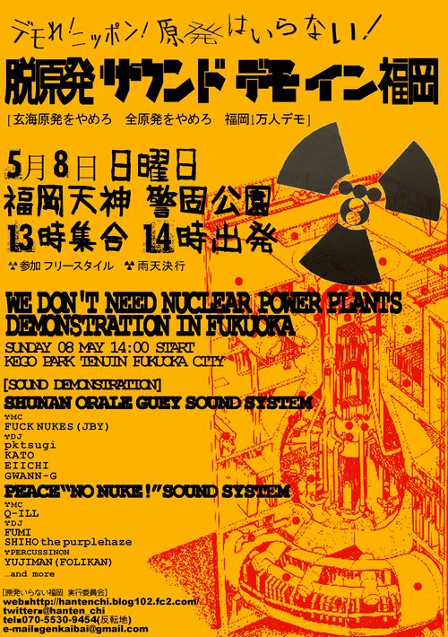 本日、福岡天神で脱・原発大規模デモがあるようです。