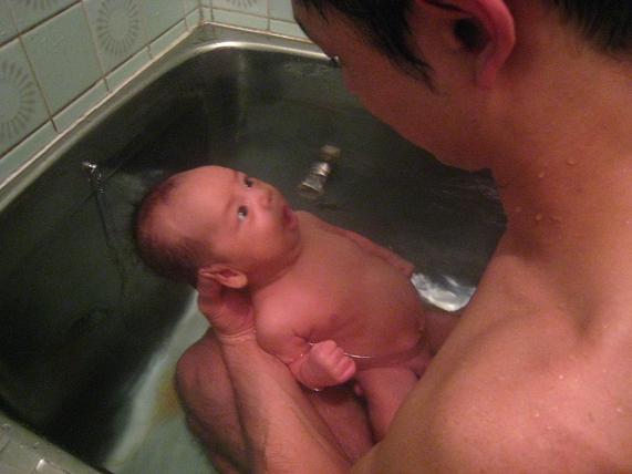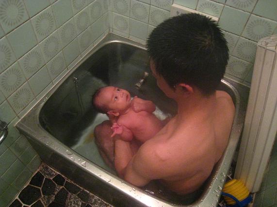 こうして見ると赤ちゃんも小さいけど風呂も小っちぇ~。