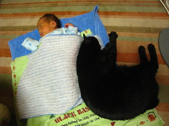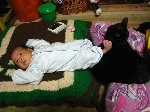 初めて母親以外の異性と枕を交わすというのに泣き叫ぶアビ君。