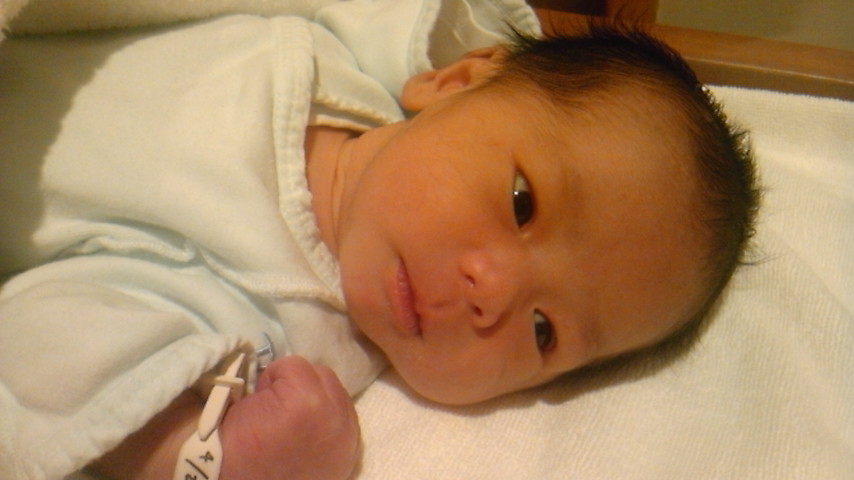 吸引器で吸いだされた赤ちゃんは頭が伸びてコーンヘッド状態。
